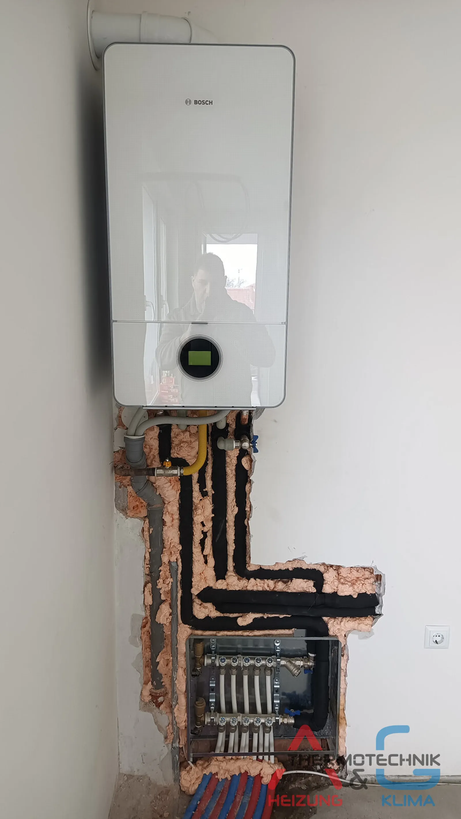 Die fachgerechte Installation umfasste die Demontage des alten Heizkessels, die Montage des neuen BOSCH Condense 7000i W sowie den Anschluss an die bestehende Gas- und Heizungsleitung. Nach der Inbetriebnahme und Einstellung der Regelung profitiert der Kunde von deutlich niedrigeren Gasverbräuchen und einem zuverlässigen, wartungsarmen Heizsystem.