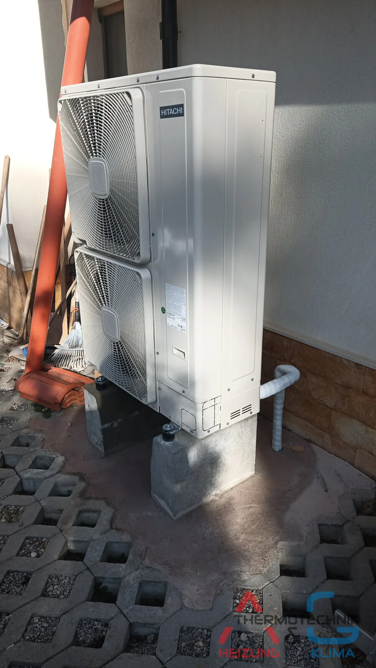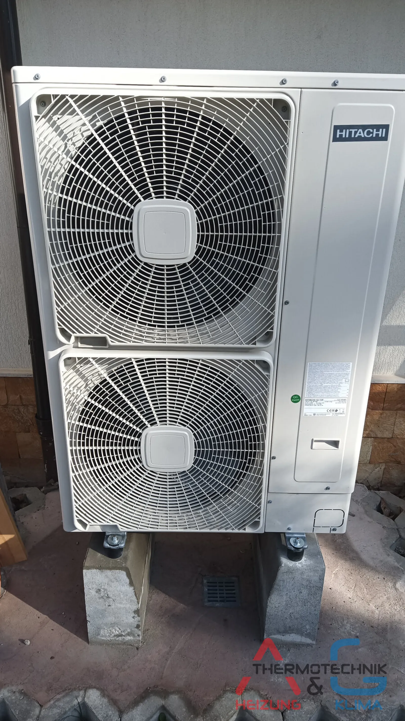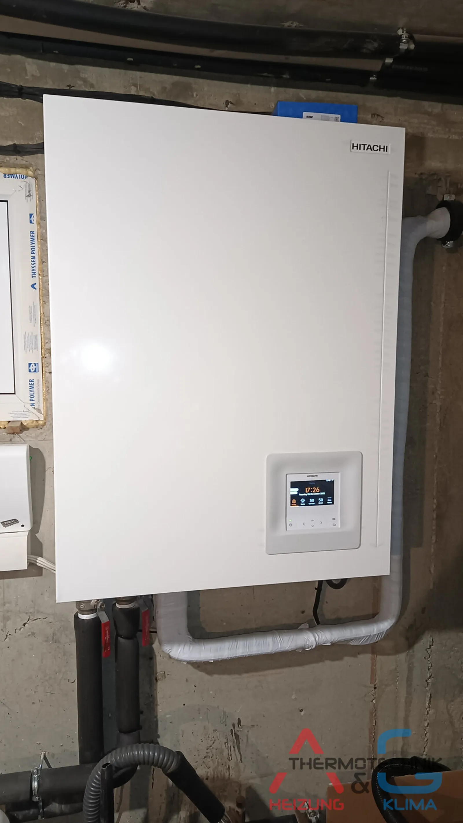 Für dieses Projekt haben wir eine leistungsstarke HITACHI Yutaki S Luft-Wasser-Wärmepumpe mit 25 kW Heizleistung installiert. Diese höhere Leistungsklasse eignet sich besonders für größere Wohngebäude oder Mehrfamilienhäuser, die einen erhöhten Wärmebedarf haben. Die HITACHI Yutaki S überzeugt durch ihre hohe Effizienz auch bei niedrigen Außentemperaturen und gewährleistet eine zuverlässige Wärmeversorgung das ganze Jahr über.