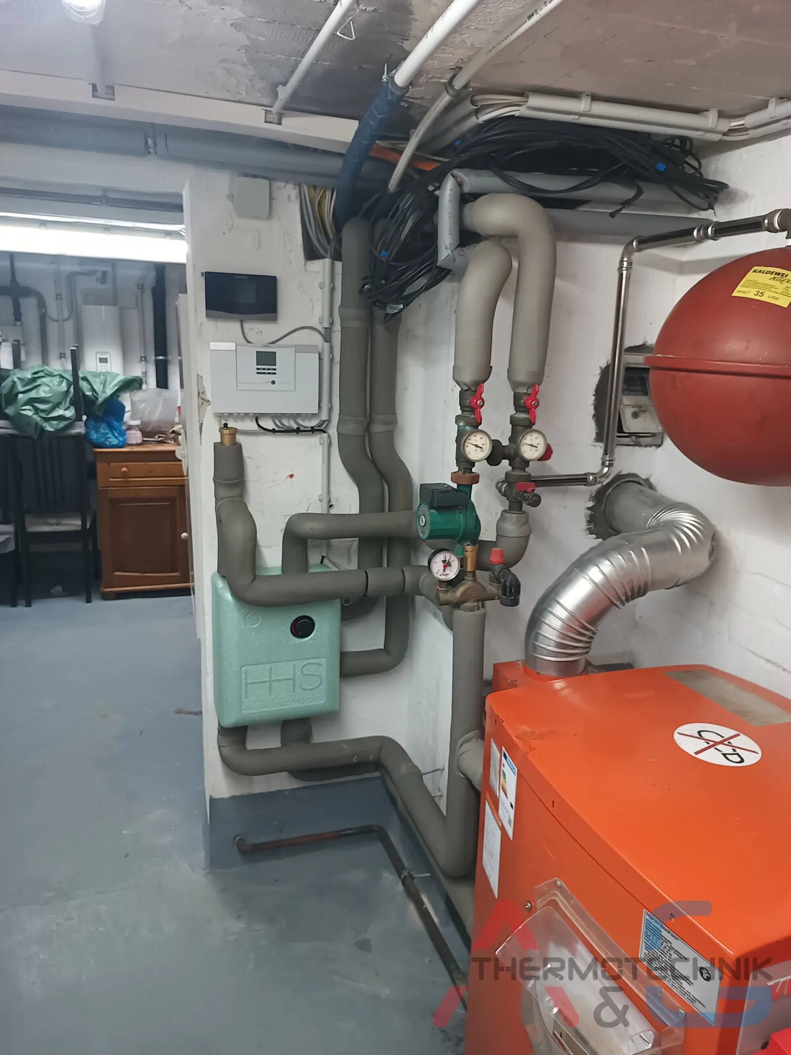 Die Verbindung zwischen Wärmepumpe und Gaskessel wird über die HHS Hybrid System Box gesteuert, die beide Wärmeerzeuger intelligent koordiniert. Das System wählt automatisch die jeweils effizienteste Betriebsart aus und sorgt so für maximale Energieeinsparungen. Durch die Kombination von bestehender Gastechnik mit moderner Wärmepumpentechnologie konnte der Kunde seinen Energieverbrauch erheblich senken, ohne auf Versorgungssicherheit verzichten zu müssen.